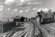 An amphibious attack was now made against the rear of the pocket. The 9th Brigade's assault force embarked at Ghent in Buffaloes (Landing Vehicles, tracked) and sailed down the canal leading to Terneuzen. At 2;00 AM on October 9th they set off across the Braakman inlet, supported by fire from the artillery of the 4th Canadian Armoured Division. Both attacking battalions got ashore near Biervliet quickly and reorganized against slight opposition. By 9:00 AM a bridgehead 1500 yards deep had been established and soon the reserve battalion was landed, advancing to Hoofdplaat.